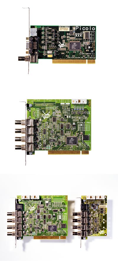 Euresys Picolo 卡是质量上乘的视频采集卡,与标准的 PAL 或 NTSC 摄像机兼容。它们专门面向视频监控与安全方面的 高端应用,或机器视觉(例如:质量控制和生产监控)方面的入门级应用。这些卡可对所提供的视频信号可靠地进行数字化处 理,提供完美影像逼真度,可充分利用摄像机提供的数据。