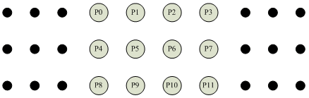Because DRAM control is complex, the desired data address must be recalculated at each access. Depending on the continuity of its data address, once the primary image data has been written, three ports can be used as continual addresses for reading. For example, in Figure 3, the first port continually reads P0, P1, and P2; the second port continually reads P4, P5, and P6; and the third port continually reads P8, P9, and P10 to detect errors in P5. When determining if there is an error at P6, the first, second, and third ports need to only read P3, P7, and P11, respectively, to form a complete calculation with the previous data. This greatly improves data usability. Also, due to the continuous reading mechanism and as long as each port reads the data in a continuous manner, the following data address do not need to be calculated over and over; significantly simplifying DRAM control.