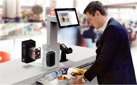 An AI checkout system based on the ADLINK DLAP-201-JT2 automatically identifies all the items on the scanning tray in less than 1.5 seconds, 10 times faster than a regular checkout.
