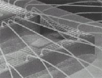 The process of wire bonding is more complex than that of die bonding, requiring more than two axes for three dimensional space movements. This process also relies on a multi-stage continuous velocity profile, with the last stage typically a binding or breaking motion. The results of the wire bonding process are shown in Figure 5. ADLINK's SSCNET can switch to velocity and torque modes in mid-motion. For precise wire bonds, image comparison accuracy is not necessary. All that is required is that routing between wire bond start and end points, and velocity be programmed. With SSCNET's nano-scale precision (131,072 resolution degree motor), wire bond precision is easily accomplished as long as motion control velocity, precision, and wire shape are consistent.
