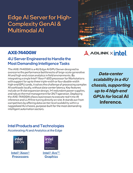 ADLINK leverages Intel® AI Edge Systems to deliver scalable, high-performance AI at the edge. Built on proven, benchmarked edge computing platforms, these solutions integrate GPU and NPU acceleration with enterprise-ready manageability to optimize real-world AI workloads. With long lifecycle support, industrial-grade reliability, and best-in-class TCO, ADLINK and Intel enable faster time-to-market and seamless AI deployment across diverse edge environments.