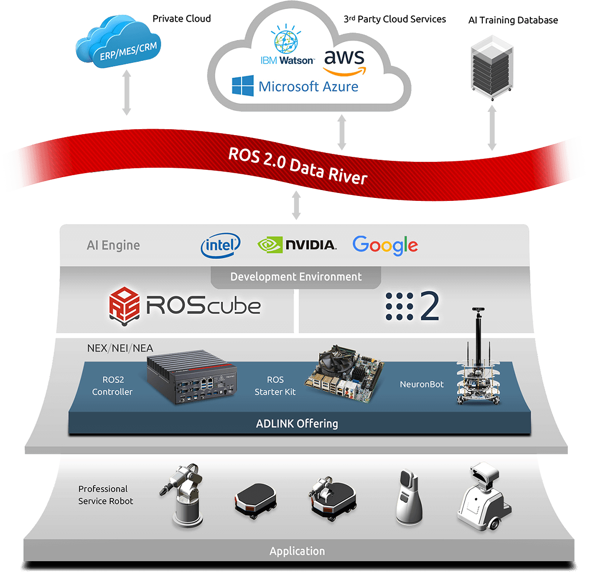 ADLINK robotics solutions allow users to develop complex robotic applications with minimal investment outlay, whereby they enjoy the benefits of various AI engines, development environments, flexible hardware systems, and evolving Data Distribution Service.