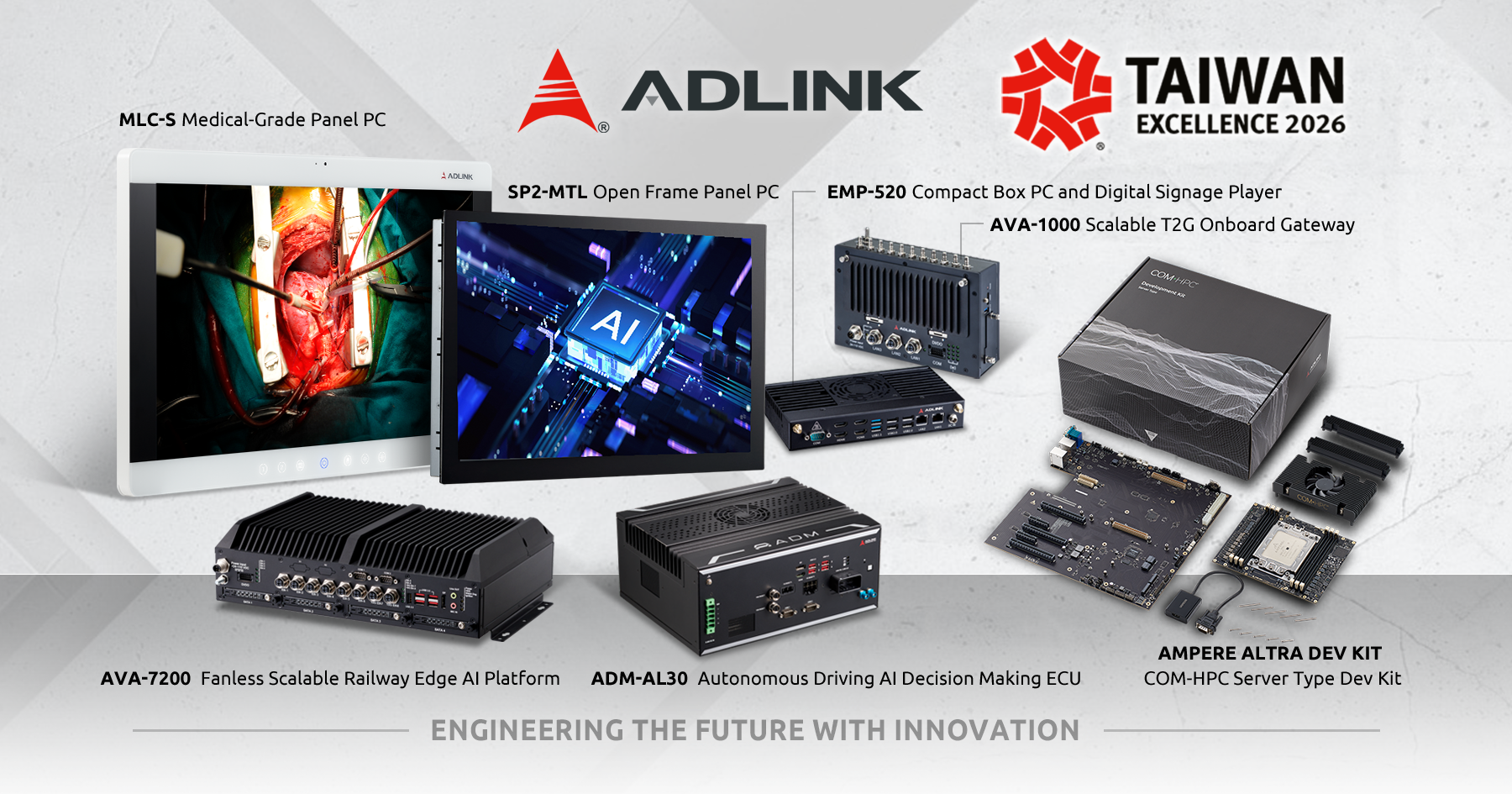 - スマート交通・医療アプリケーションで新たなマイルストーン:ADM-AL30、AVAシリーズ、MLC-S医療用パネルPCは、自動運転、鉄道、臨床医療環境において、高度に安定したAIコンピューティングと堅牢なセキュリティ保護を提供し、信頼性の高いインテリジェントなエコシステムを実現します。