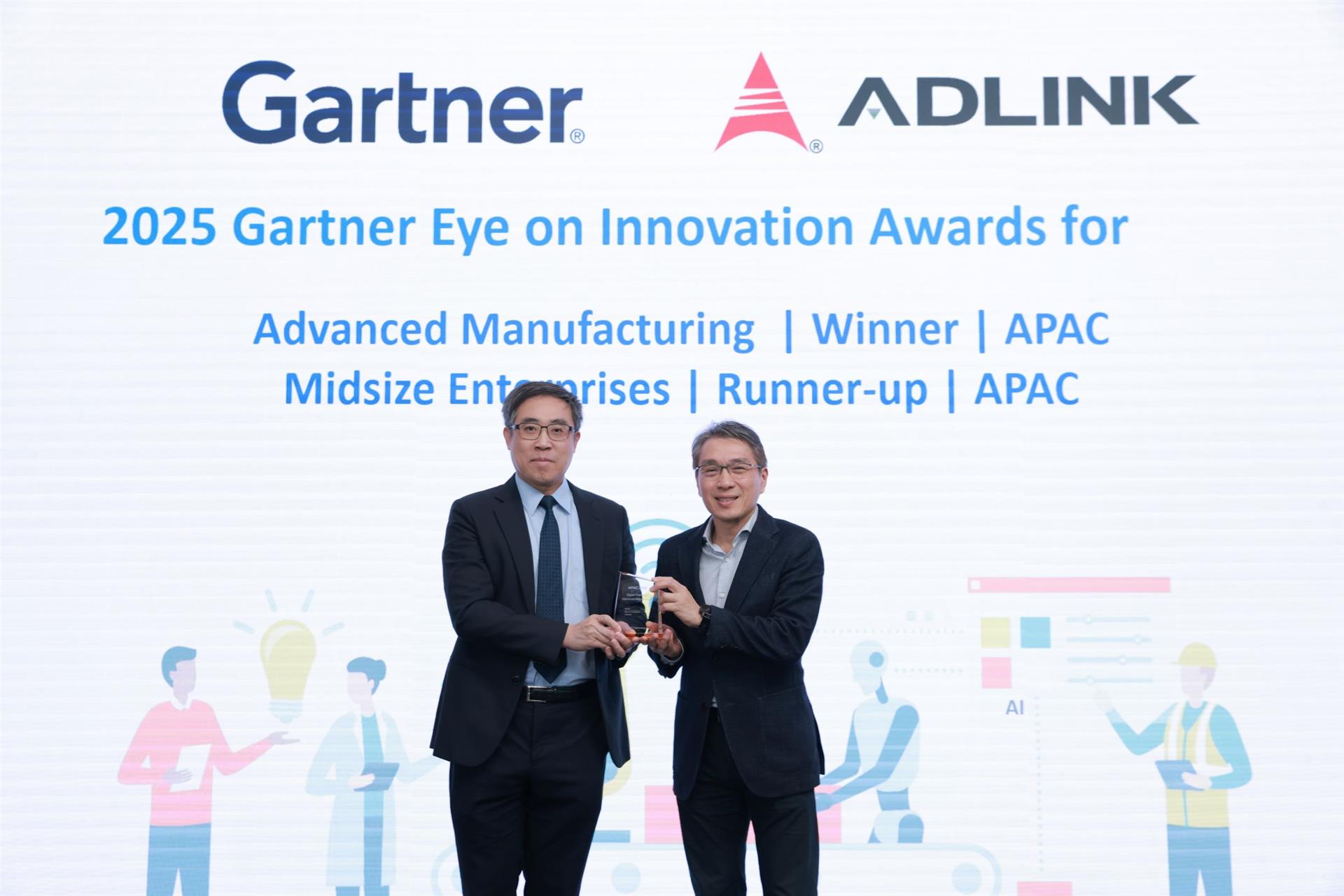 에이디링크 테크놀로지(ADLINK Technology Inc., 종목 코드: 6166)는 오늘, ‘2025 가트너 아이 온 혁신 어워드(Gartner Eye on Innovation Awards, 아시아 태평양 지역)’에서 2개 부문의 상을 수상했다고 발표했습니다. 에이디링크는 첨단 제조(Advanced Manufacturing) 부문에서 우승을 차지했으며, 중소기업(Mid-Size Enterprises) 부문에서는 러너업(Runner-Up) 에 선정되었습니다.